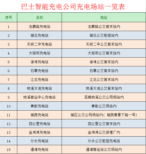 瀘州市巴士智能充電服務(wù)有限公司主要為新能源公交車、新能源小汽車等提供自助充電服務(wù),現(xiàn)主城區(qū)、城郊鄉(xiāng)鎮(zhèn)分布15個充電站對社會新能源汽車開放充電,對外充電時間為每日7:00—19:00,充電價格為電價+服務(wù)費(量大從優(yōu))。  聯(lián)系人:嚴靈    聯(lián)系電話:0830-2790272